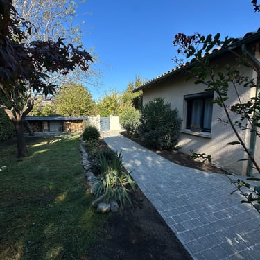 Je vous accompagne dans la conception et la réalisation de vos allées, du terrassement à la pose des matériaux, avec un soin particulier apporté au nivellement, au drainage et à l’intégration paysagère.