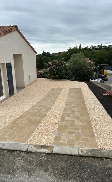 Je transforme vos espaces extérieurs en parkings pratiques, durables et harmonieux.
